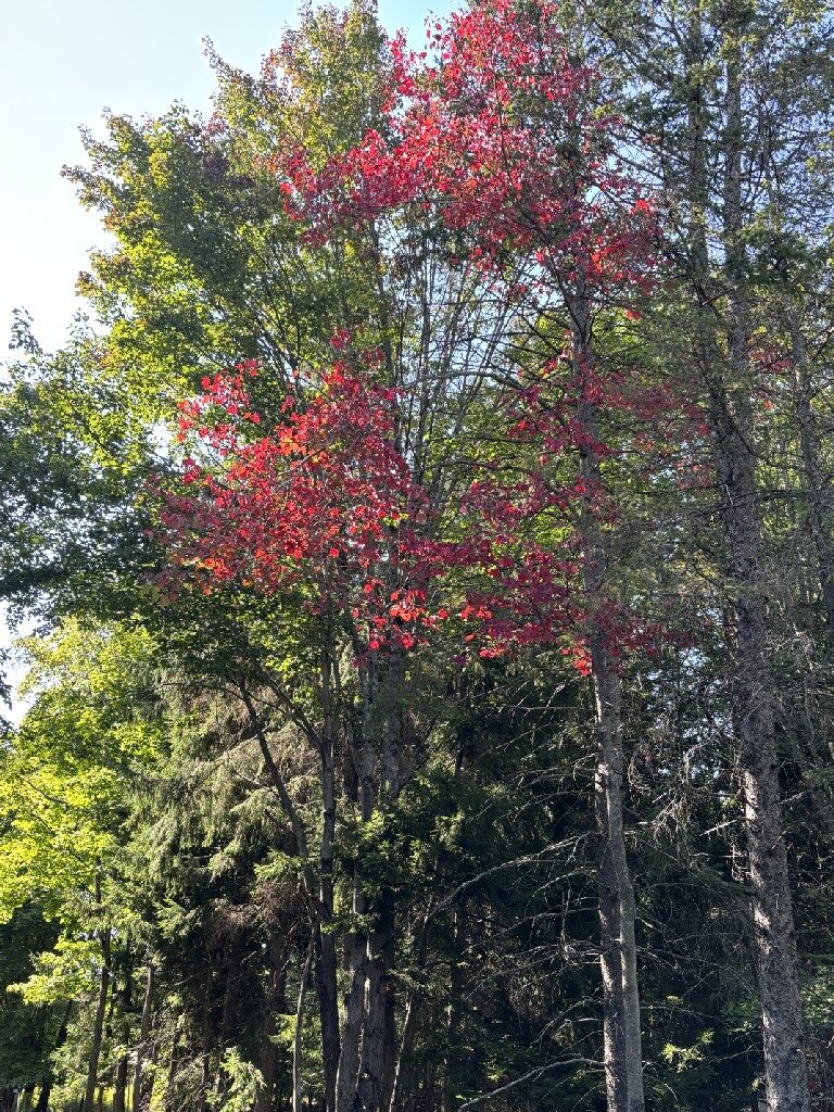 What a warm September it has been! While fall colours are progressing well, it has been interesting to see the difference in timing amongst the regions and specific trees. For example, this particular roadside red maple growing near Huntsville Ontario was in full fall colour on September 4!
