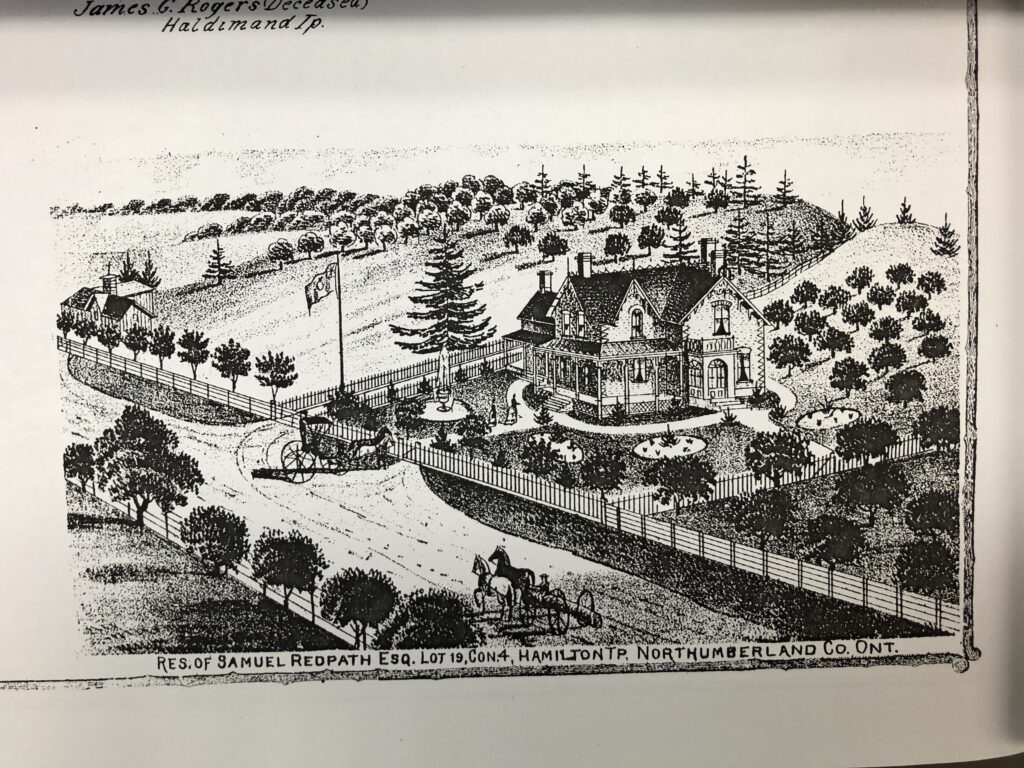 Not far off is a splendid row of young maples, planted by Mr. Macklin, Jr. These are set out but five years, and have made twice the growth of many for the time. They are twenty feet in height, nearly fifteen in spread, many six inches in stem and present a splendid appearance, extending the full length of the lot along both concession and sidelines, as well as forming a long double avenue from the road to the house. His success was attributed to mulching an area six feet in diameter with pea straw and stones – the stone to keep the cattle away.